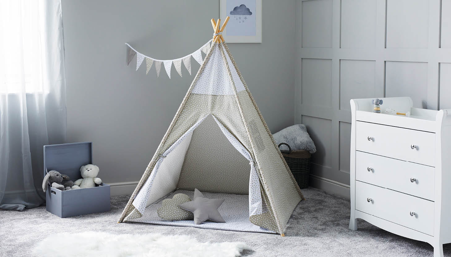 Jetzt, da Sie Ihre Möbel sortiert haben, ist es an der Zeit, sie gemütlich und stilvoll einzurichten. Wir haben alle Bettwaren und Accessoires, um Babys Zimmer gemütlich und schön zu gestalten.