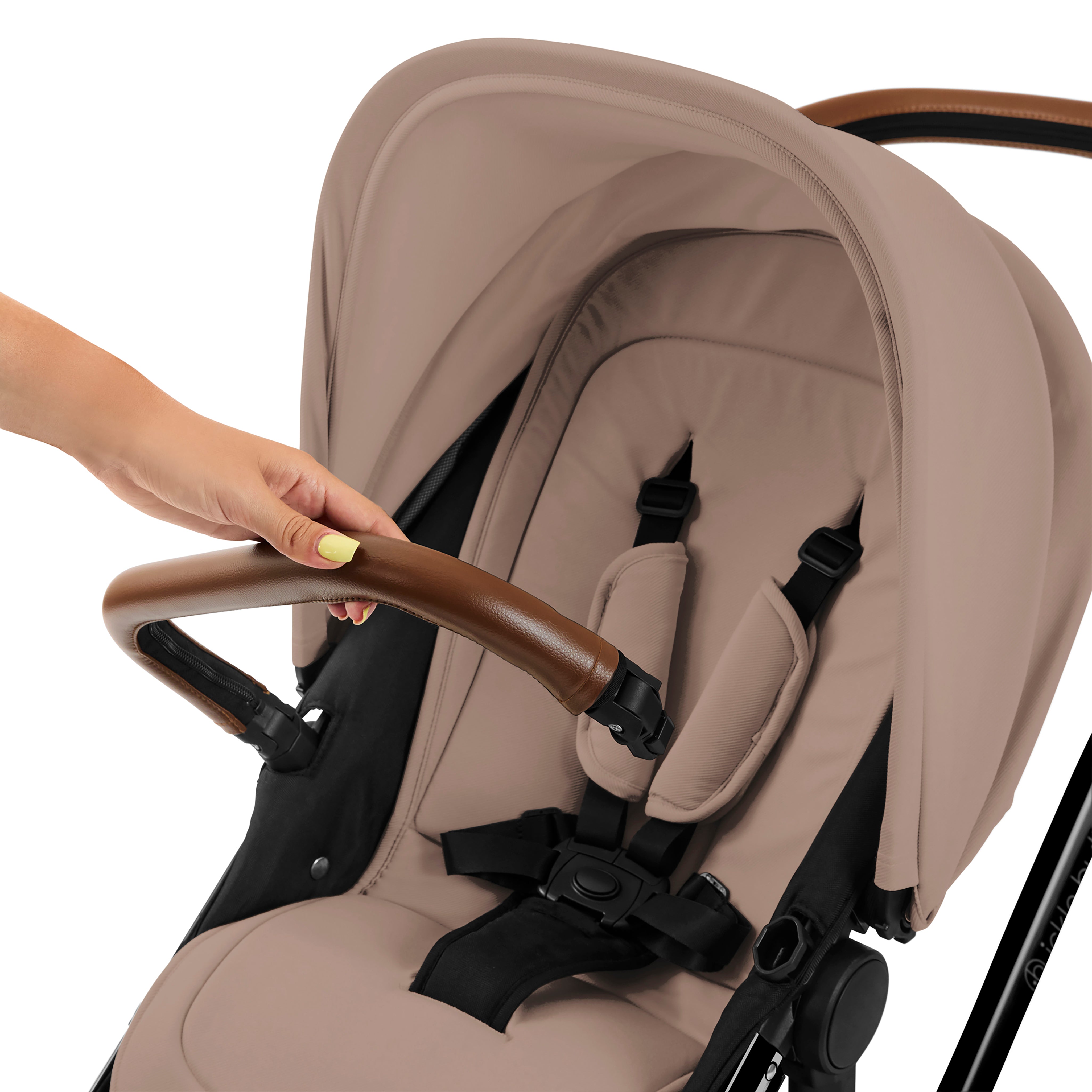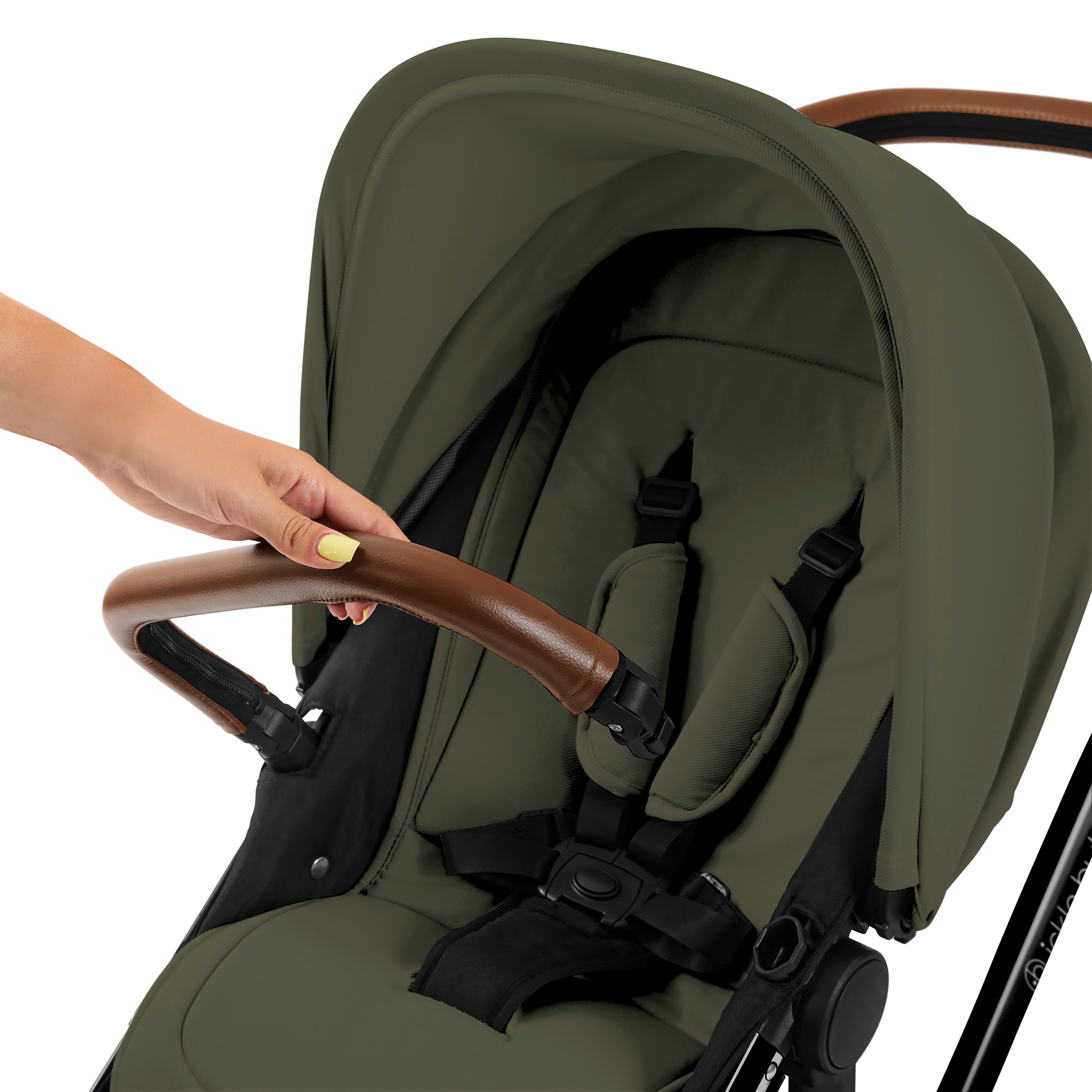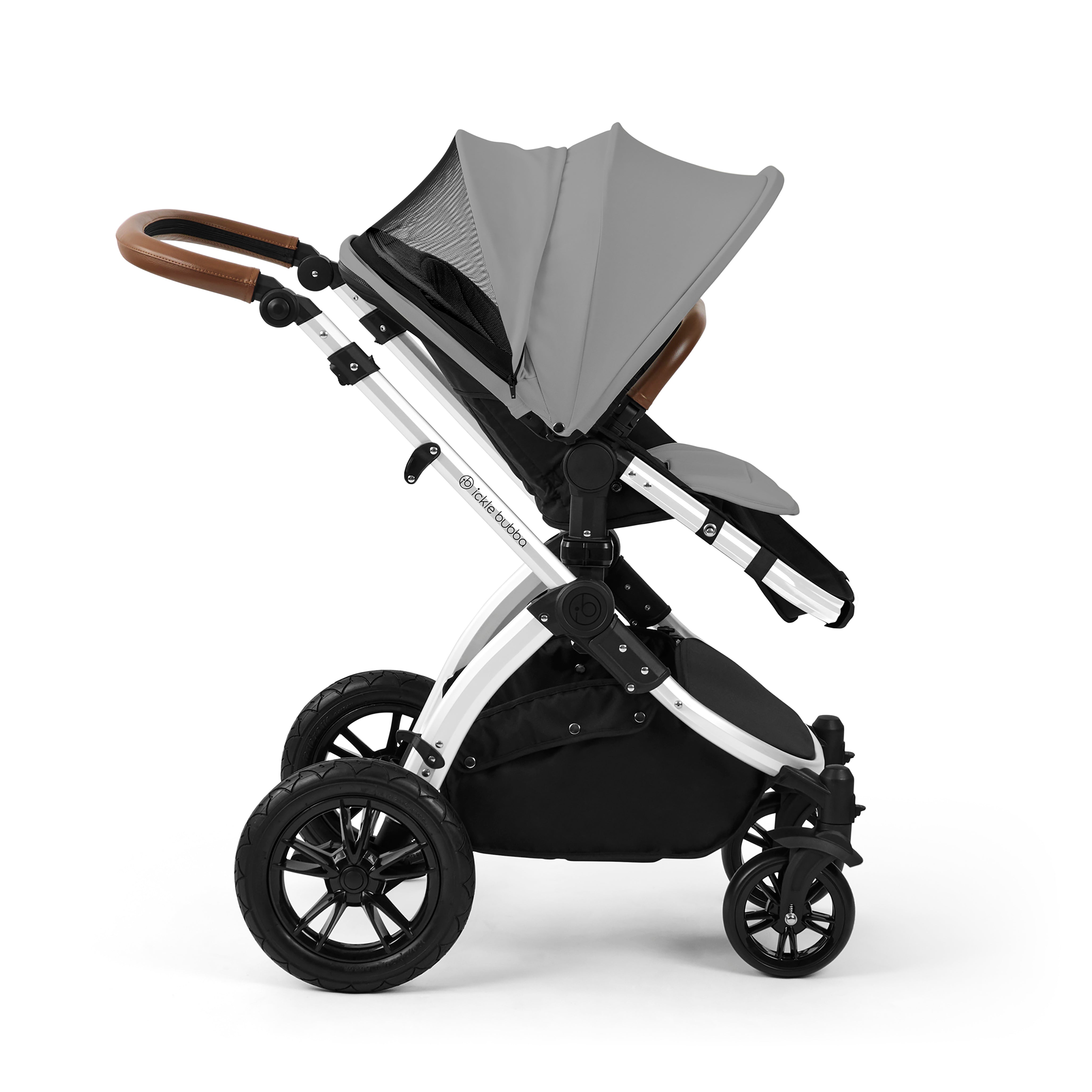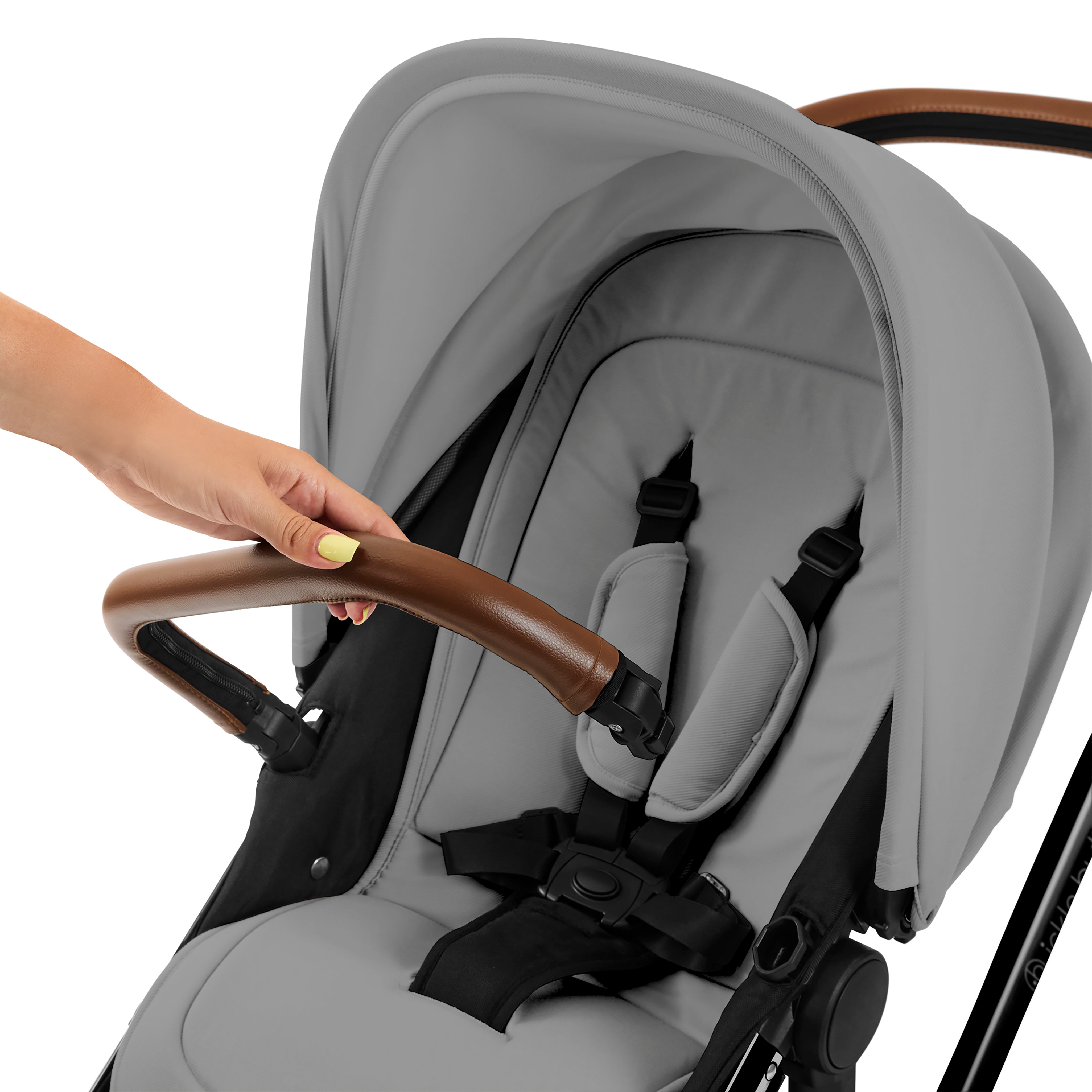 Ich liebe es, wie einfach es war, meinen Stomp Luxe zu benutzen. Er ist so leicht und einfach zu schieben, zum Glück ist er absolut perfekt für Spaziergänge im Gelände, die hinteren pannensicheren Gummiräder machen es so einfach und sanft, über Gras zu fahren, und die Vorderräder sind selbsthemmend, was mehr Kontrolle während der Spaziergänge bietet.