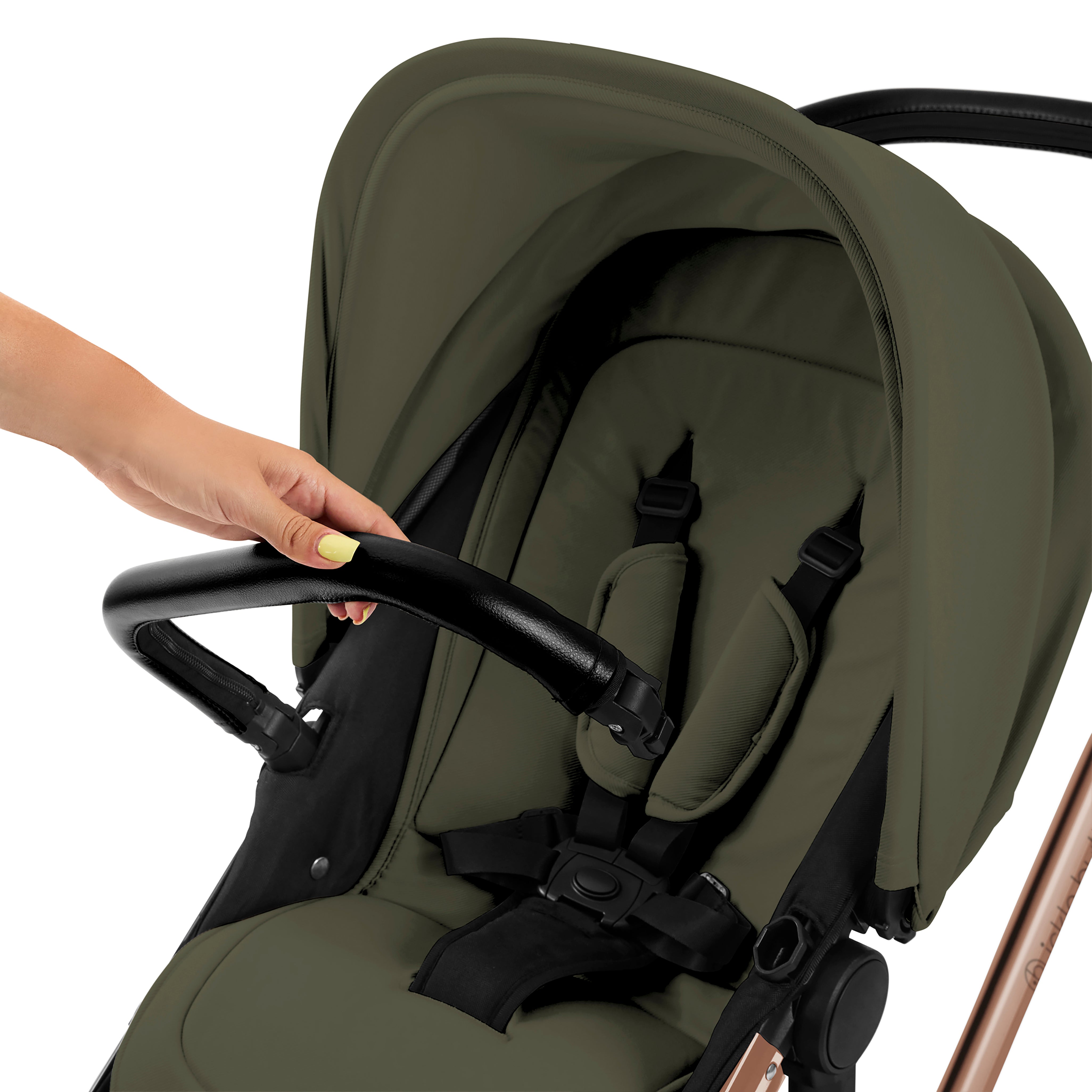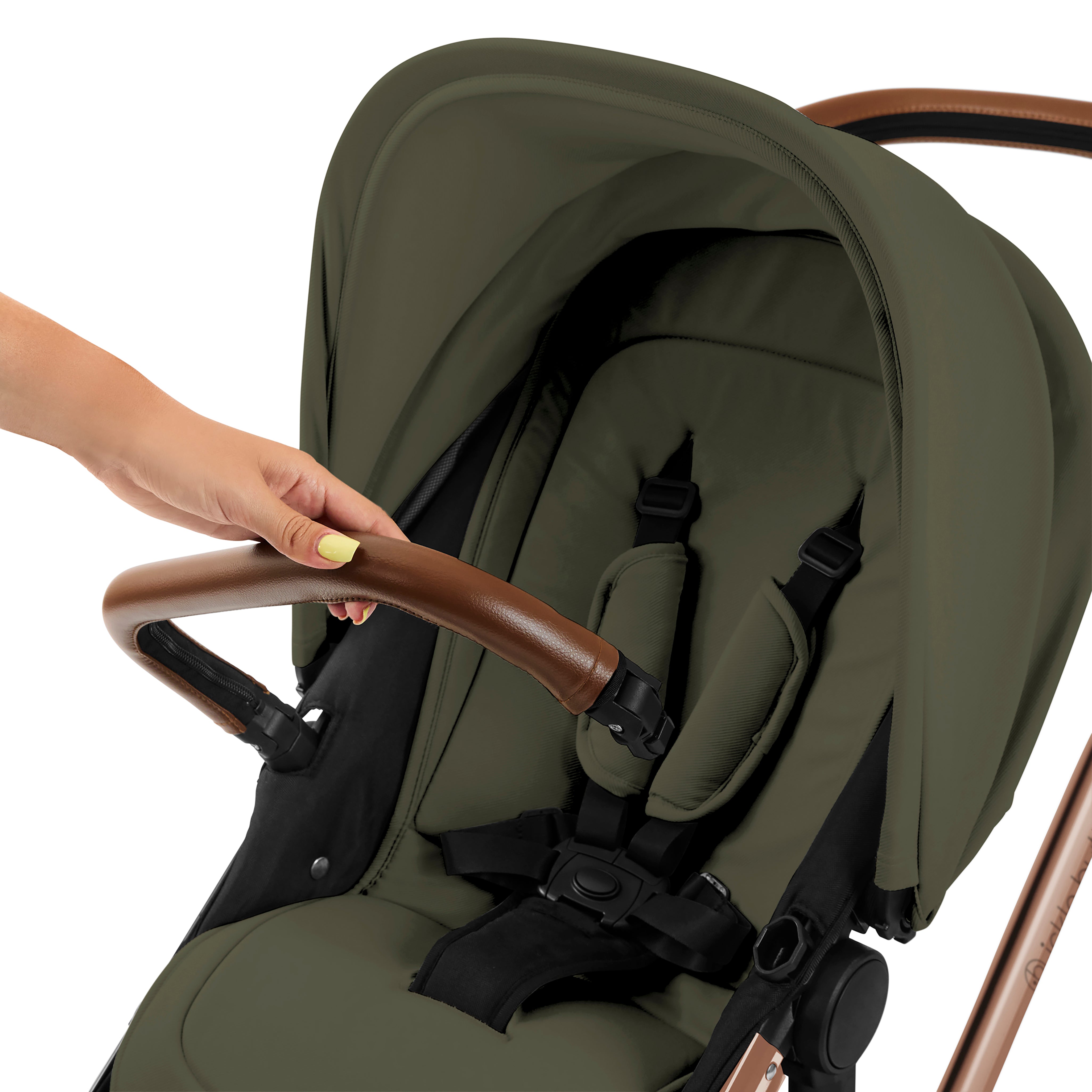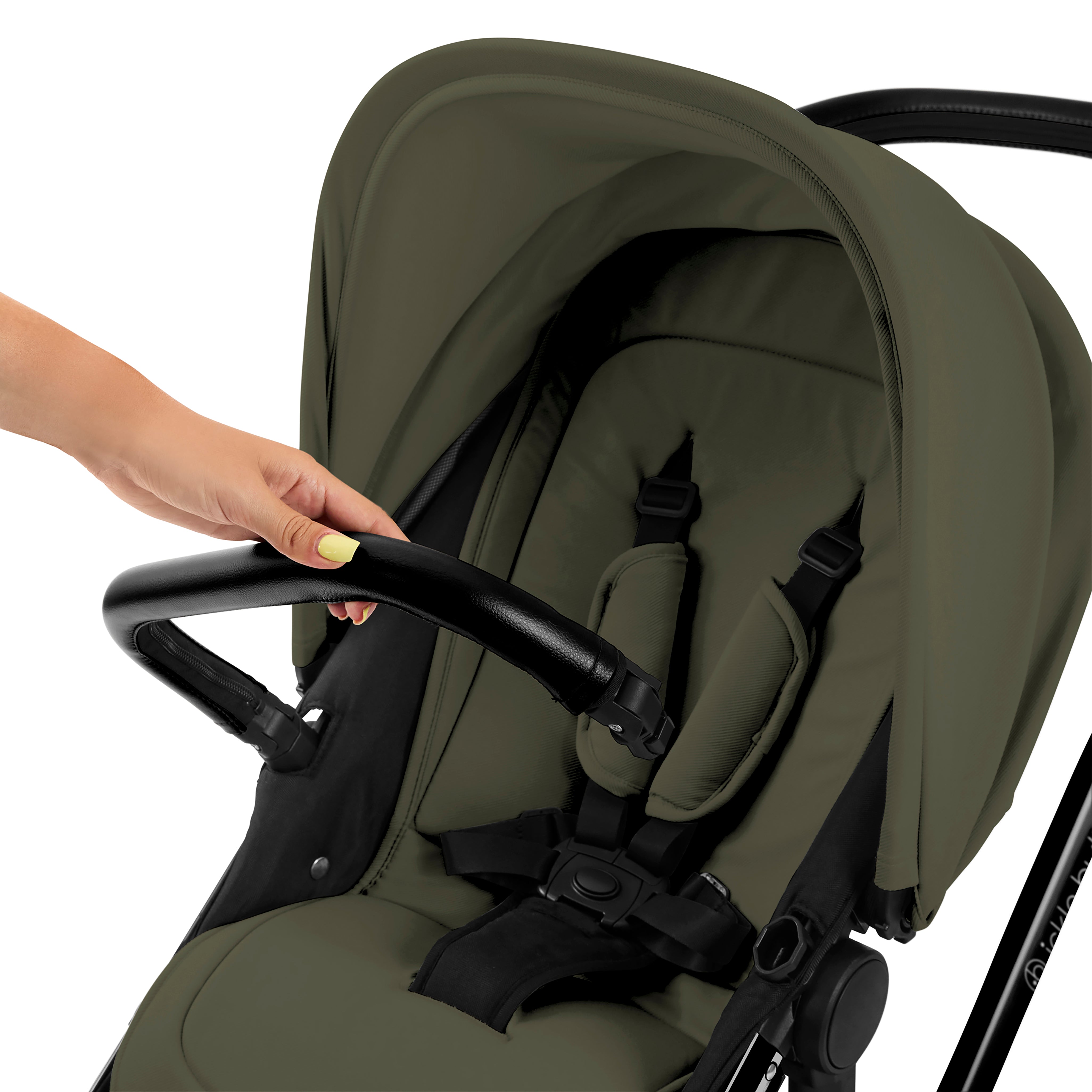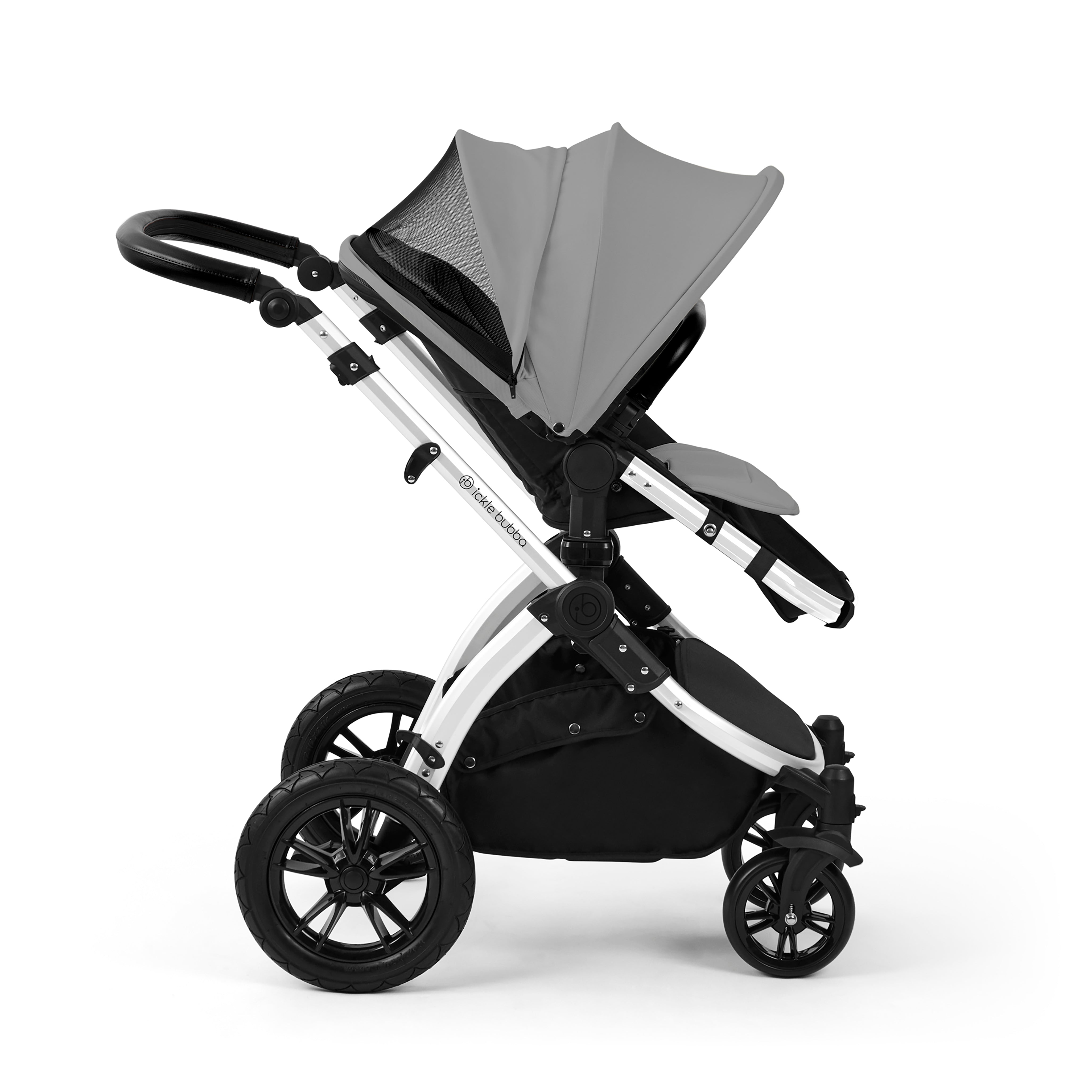 Ich liebe es, wie einfach es war, meinen Stomp Luxe zu benutzen. Er ist so leicht und einfach zu schieben, zum Glück ist er absolut perfekt für Spaziergänge im Gelände, die hinteren pannensicheren Gummiräder machen es so einfach und sanft, über Gras zu fahren, und die Vorderräder sind selbsthemmend, was mehr Kontrolle während der Spaziergänge bietet.