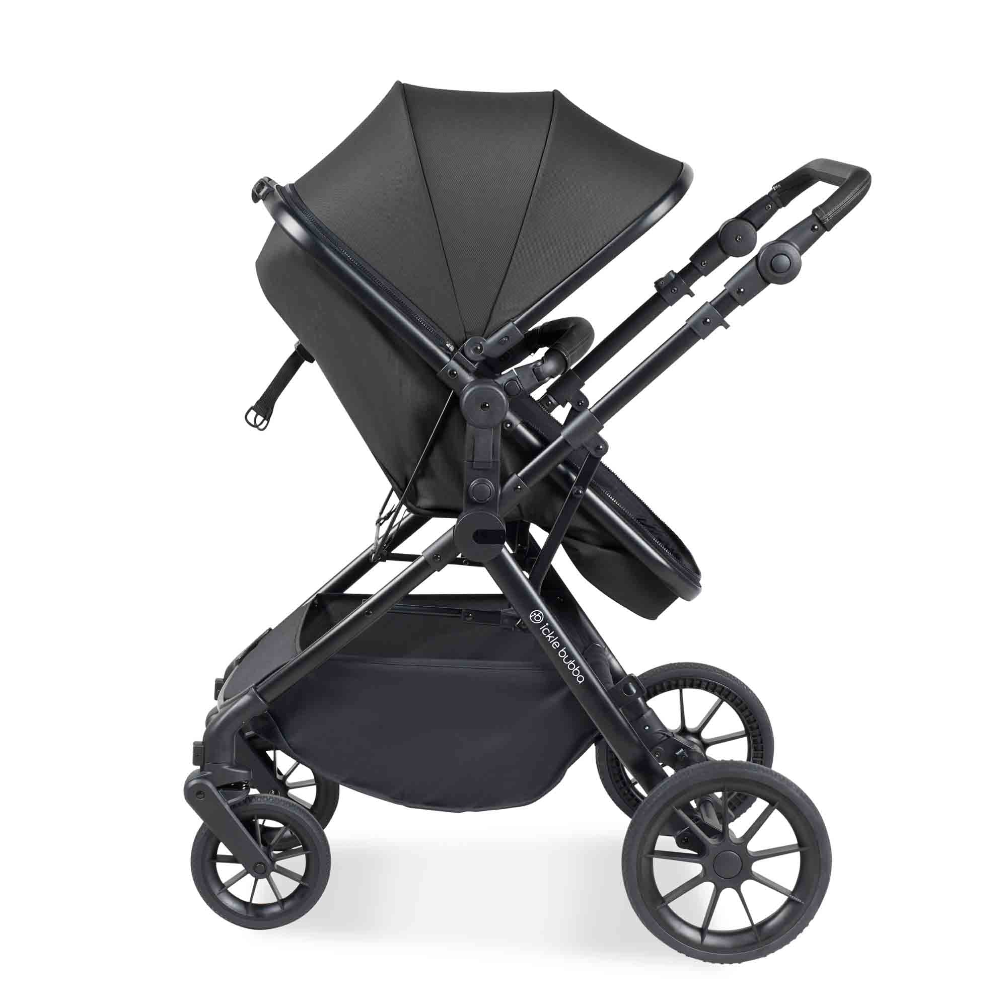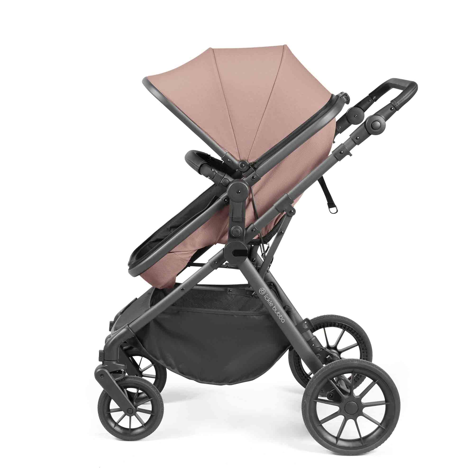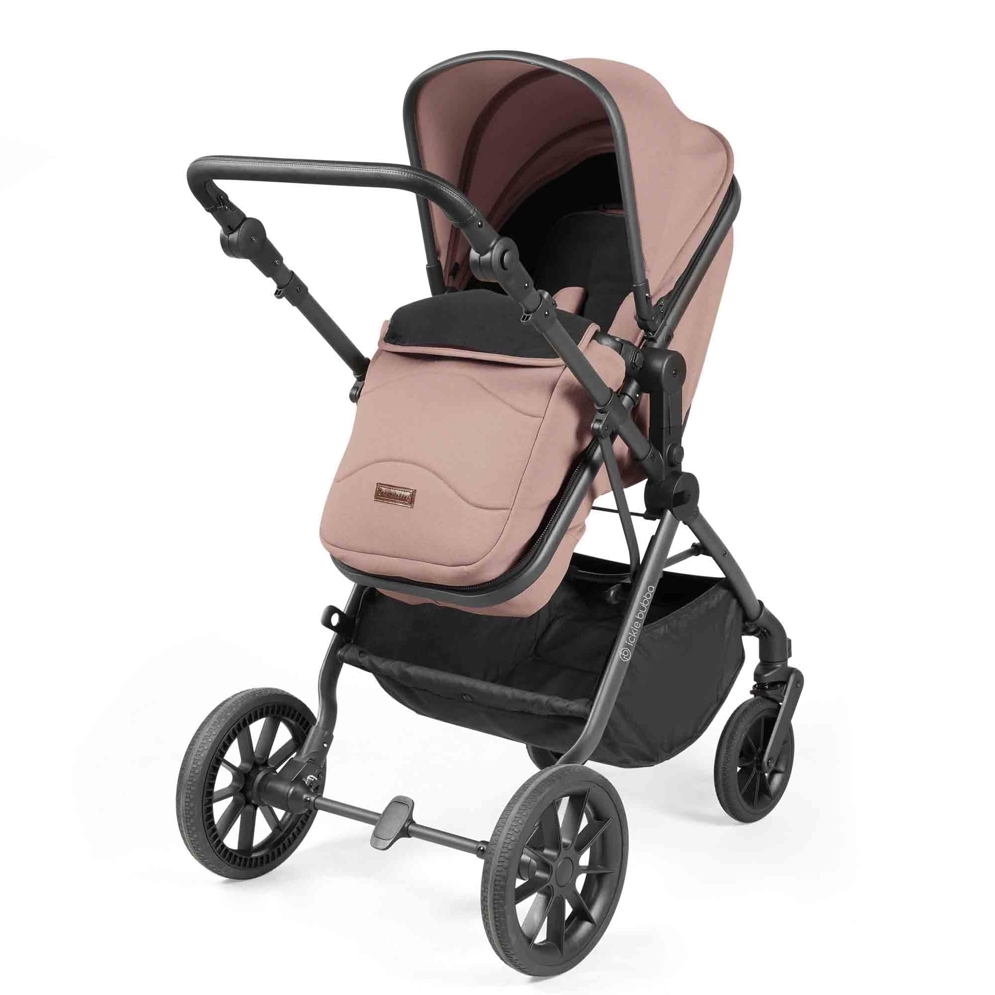Der Cosmo Kinderwagen schafft eine flache Liegefläche für Neugeborene und lässt sich mit zunehmendem Alter in die Sitzeinheit des Kinderwagens verwandeln. Er eignet sich für Babys von der Geburt bis 22 kg (ca. 4 Jahre). Sie und Ihr Baby können sich über luxuriöse Stoffe, einen mit Fleece gefütterten Fußsack und eine Schutzschürze mit Sichtschutz freuen. Außerdem haben Sie die Wahl zwischen einem modernen, mattschwarzen Finish und einem Fahrgestell in Rotguss, das mit dem Kunstlederlenker harmoniert und einen erschwinglichen Kinderwagen der Extraklasse darstellt.