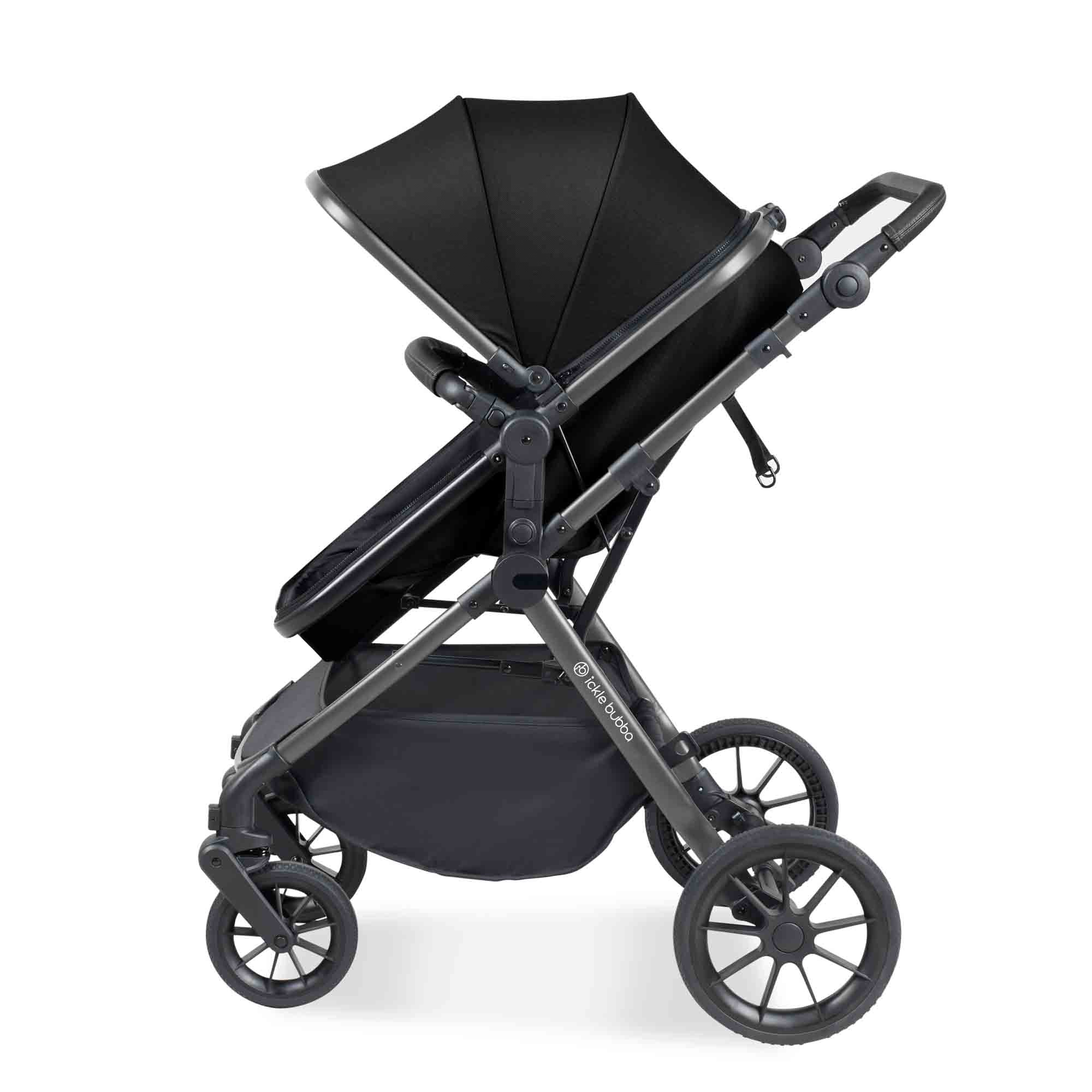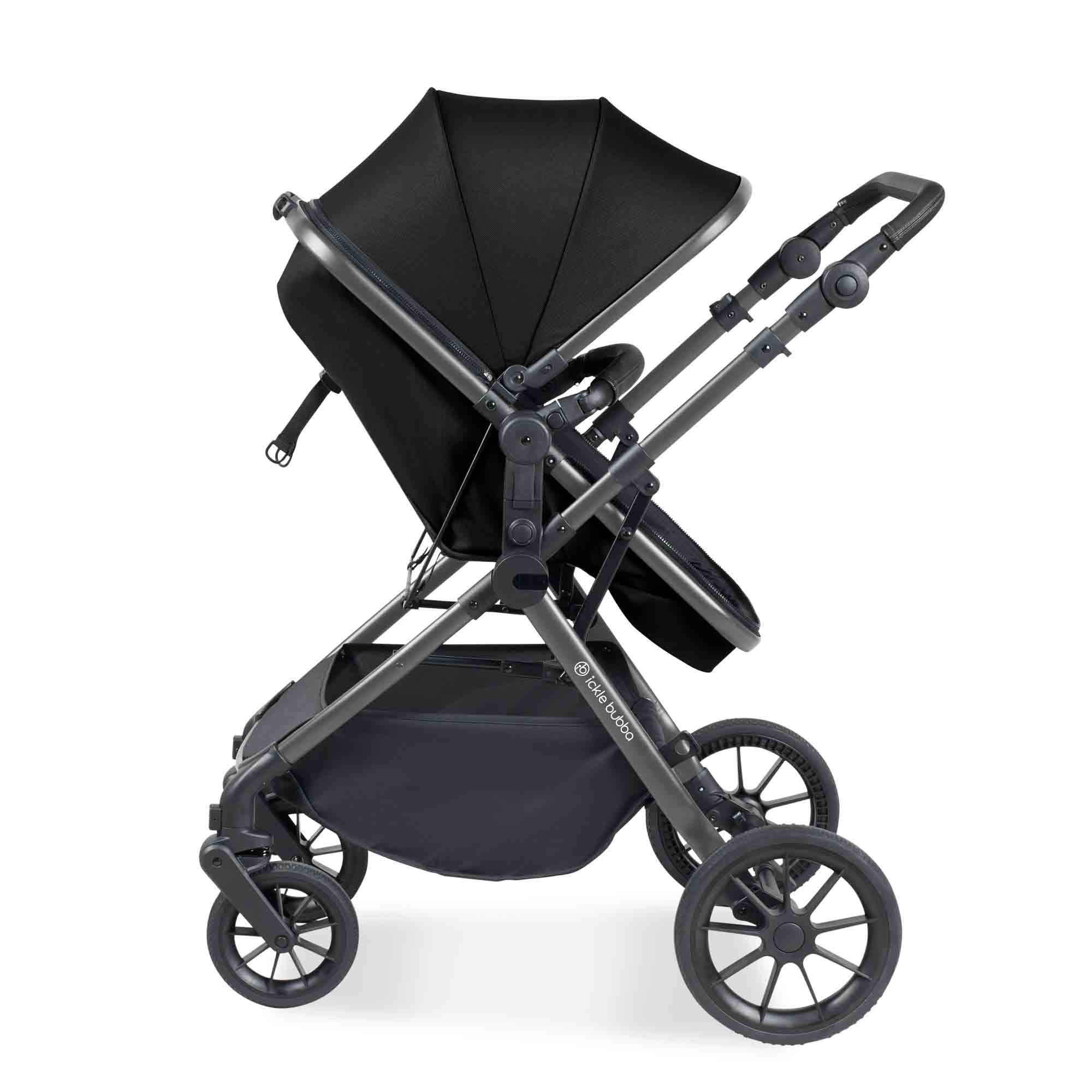 Genießen Sie luxuriöse Stoffe, robuste Reifen, einen extragroßen, leicht zugänglichen Einkaufskorb, einen in mehreren Positionen verstellbaren Sitz und eine Wickeltasche mit Matte.
